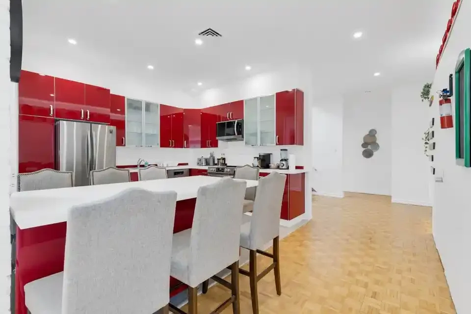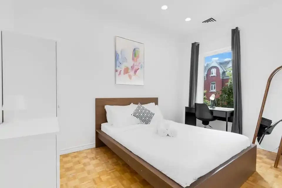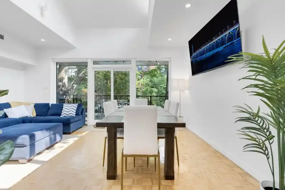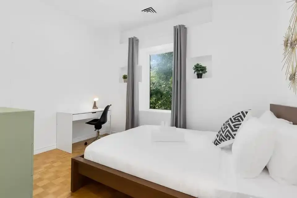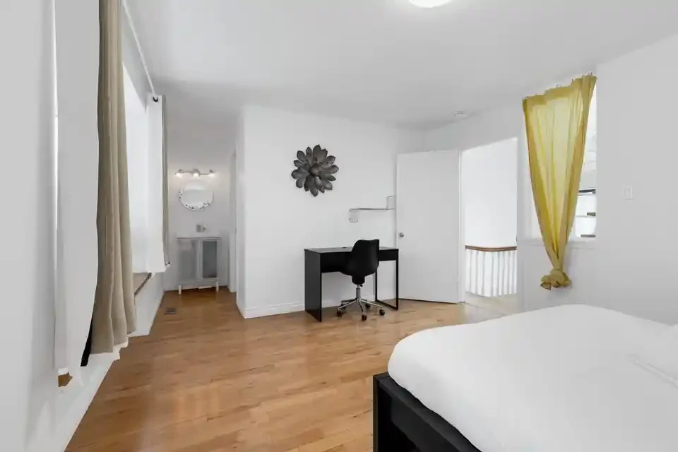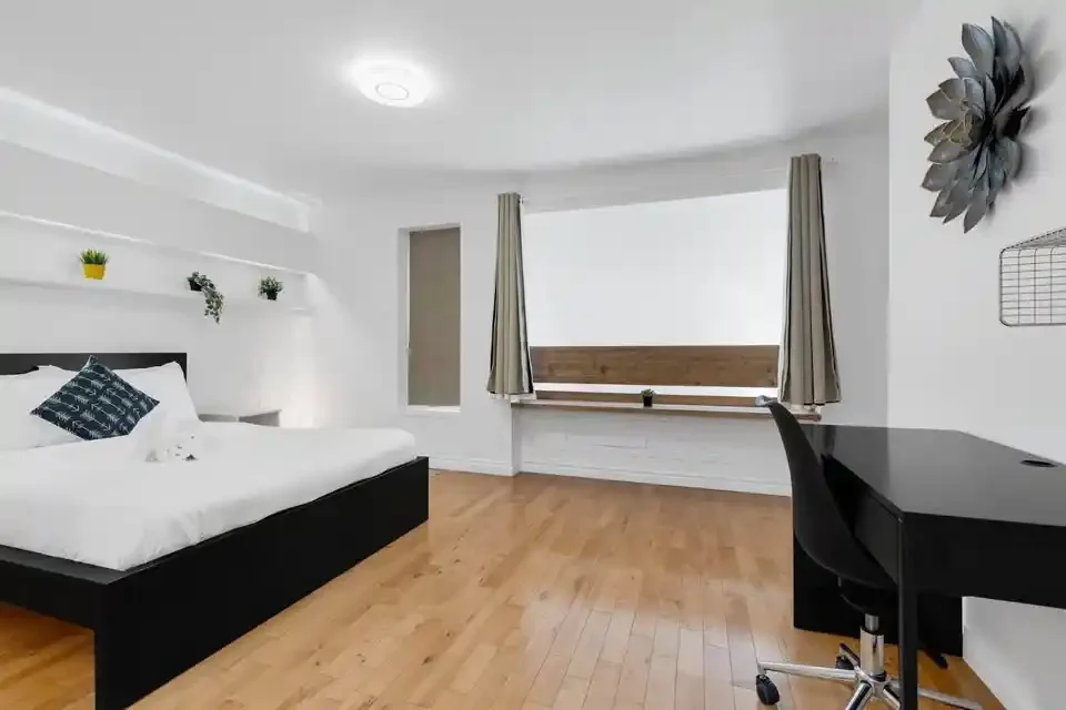 Get ready to feel right at home in our cozy and inviting space. As you enter, you’ll find a fully stocked kitchen, equipped to whip up delicious meals. This modern apartment showcases five private bedrooms, and 3 bathrooms extended out over 2 different floors. Each bedroom offers comfort and ample storage space for your convenience. The expansive open-concept living and dining area creates a generous space ideal for socializing and unwinding.