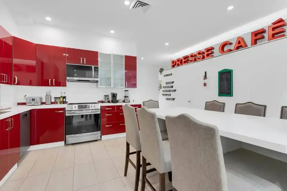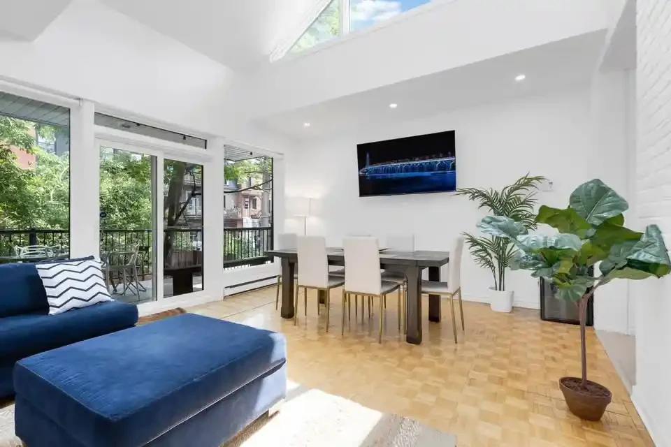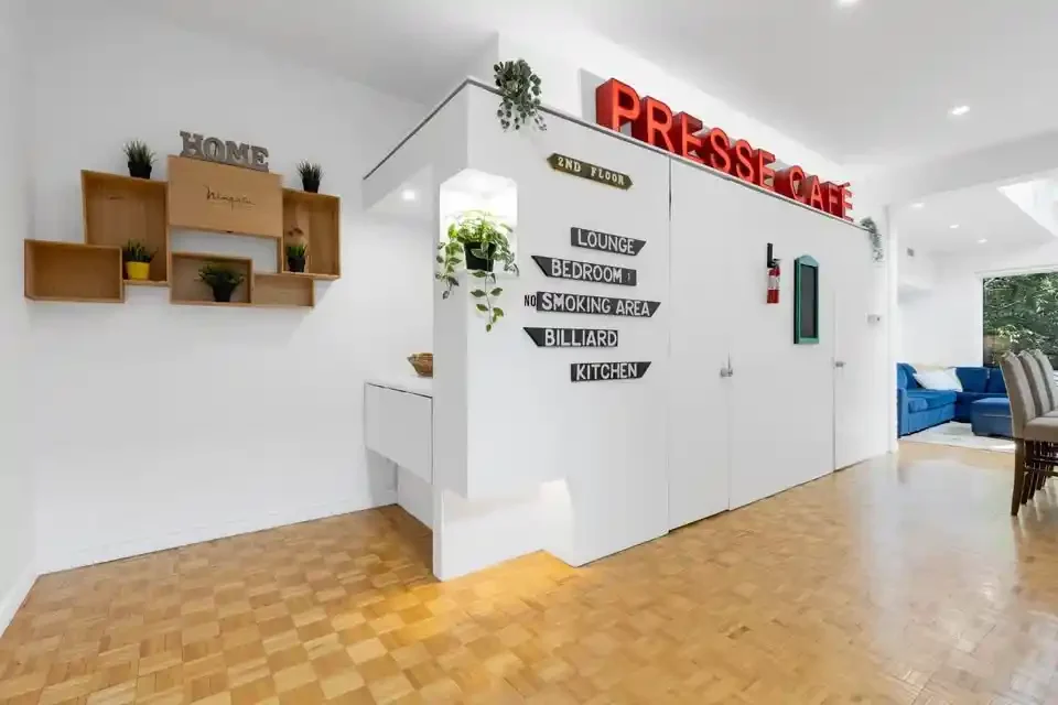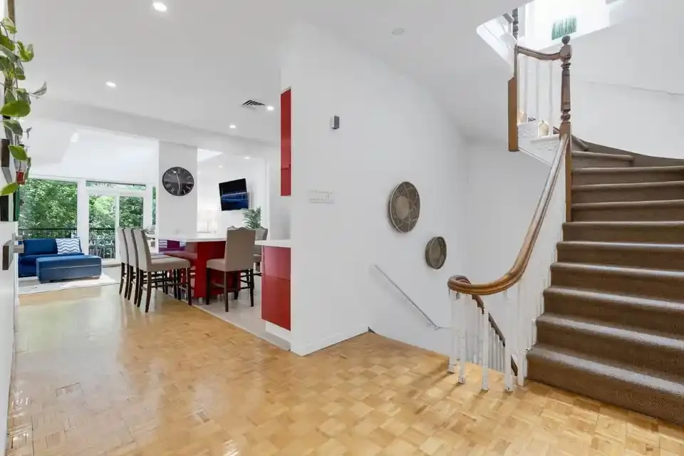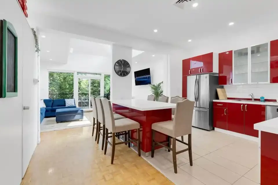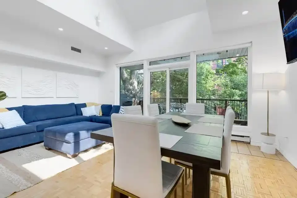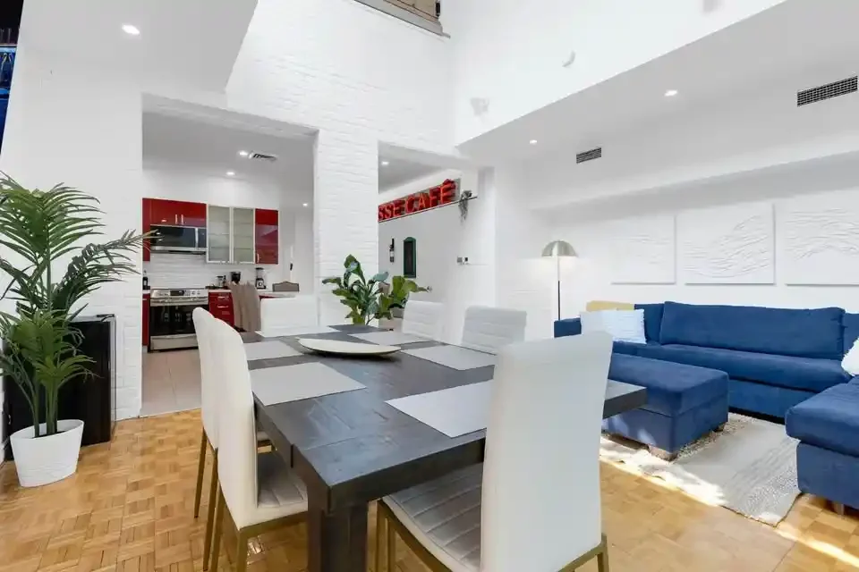 Get ready to feel right at home in our cozy and inviting space. As you enter, you’ll find a fully stocked kitchen, equipped to whip up delicious meals. This modern apartment showcases five private bedrooms, and 3 bathrooms extended out over 2 different floors. Each bedroom offers comfort and ample storage space for your convenience. The expansive open-concept living and dining area creates a generous space ideal for socializing and unwinding.
